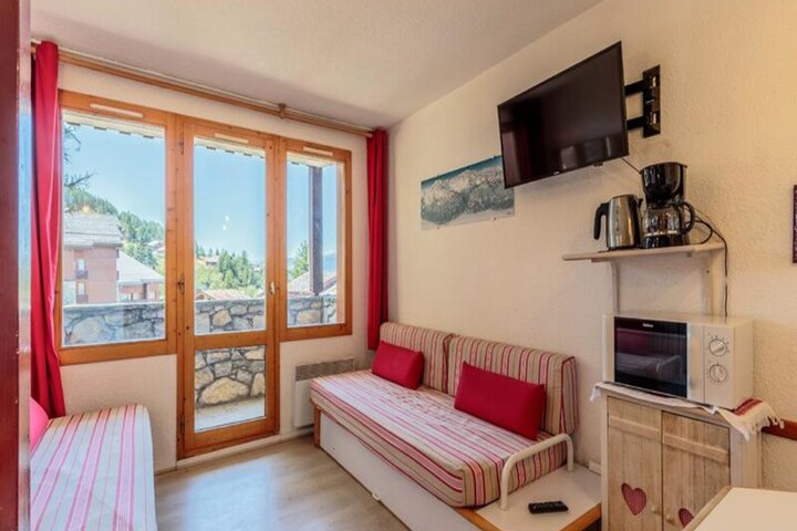 High above the charming alpine village of Montchavin, this cozy 25 m² apartment invites you to experience the perfect blend of comfort and adventure. Situated on the 4th floor of the Le 4ème Dé residence, the space is designed for up to four guests, making it an ideal retreat for couples or small families seeking an escape to the French Alps. With its southwest-facing balcony, you can soak in the serene views of the resort while enjoying the crisp mountain air.