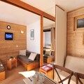 Designed for up to four guests, the studio features a versatile living space with two single beds and a sleeping alcove with bunk beds, making it an ideal choice for families or small groups. The separate kitchen is fully equipped with a microwave/grill, dishwasher, refrigerator, and ceramic hobs, ensuring you have everything you need to prepare hearty meals after a day on the slopes. The bathroom includes a bathtub for a relaxing soak, while the separate toilet adds extra convenience. Modern touches like a flat-screen TV and the option of paid resort Wi-Fi ensure a comfortable stay.