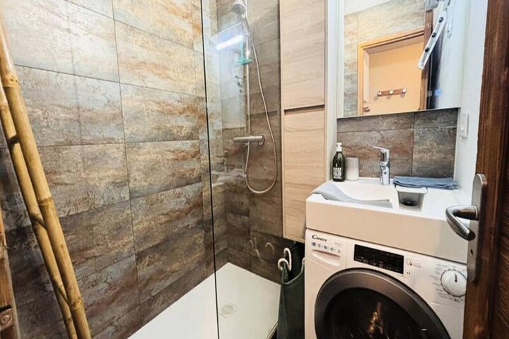 In the serene embrace of the French Alps, this charming 33 m² apartment offers a cozy retreat for up to four guests. Positioned on the second floor of the Le 4ème Dé residence, it combines modern comfort with alpine charm, making it the perfect base for your mountain adventures. The apartment features two bedrooms—one with a double bed and another with a double bunk bed—alongside a welcoming living room equipped with a TV and Wi-Fi. The kitchen is fully outfitted with an oven, dishwasher, microwave, induction hobs, refrigerator/freezer, and even a raclette and fondue set for authentic French dining experiences. A private balcony terrace faces north, offering tranquil mountain views, while a ski locker ensures convenience for winter sports enthusiasts. Additional amenities include a washing machine, separate toilet, and duvets for a warm and comfortable stay. Please note, this is a non-smoking, pet-free apartment.