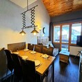 The apartment is thoughtfully designed to maximize both space and comfort. Upstairs, a tranquil bedroom with a double bed and TV provides a restful haven, while the ground floor features a cozy sleeping alcove and a living room with a sofa bed. The fully equipped kitchen includes everything you need for home-cooked meals, from a combi oven to a fondue set for authentic alpine evenings. Two modern bathrooms, one with a shower and the other with a bathtub, ensure convenience for all guests. Wi-Fi, duvets, and a ski locker add to the ease of your stay, while the non-smoking and pet-free policy ensures a pristine environment.