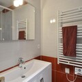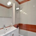Inside, the apartment is thoughtfully designed to accommodate up to 11 guests across five rooms. The open kitchen, equipped with a combi oven, ceramic hobs, refrigerator, and dishwasher, makes it easy to prepare hearty meals after a day on the slopes. The living room features three single beds and a flat-screen TV for cozy evenings together. The bedrooms are well-appointed, offering a mix of single and double beds, while three modern bathrooms ensure ample space for everyone.