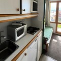 Compact yet thoughtfully designed, this 23 m² studio comfortably accommodates up to 4 guests. The living area features two single beds and a trundle bed, while a cozy sleeping alcove offers bunk beds, perfect for families or small groups. The kitchen, equipped with modern appliances including an oven, microwave, dishwasher, and refrigerator, invites you to prepare hearty meals after a day of adventure. A flat-screen TV and a warm, inviting atmosphere ensure relaxation and comfort during your stay. The bathroom includes a bathtub and toilet, and blankets are provided for your convenience.