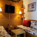 High above the snowy peaks of Plagne Bellecote, this charming apartment offers a cozy retreat for adventurers seeking the perfect alpine getaway. Situated on the 6th floor of the Les Glaciers 3 residence, this south-facing gem boasts a private balcony with breathtaking views of the slopes, inviting you to soak in the serene mountain atmosphere. Whether you're here to carve through pristine powder or simply relax amidst the beauty of the French Alps, this location promises an unforgettable experience. \n\nDesigned to accommodate up to four guests, the 28 m² apartment is thoughtfully equipped for comfort and convenience. The living room features four single beds and a flat-screen TV, creating a welcoming space to unwind after a day of exploration. The separate kitchen is fully equipped with modern appliances, including a microwave, ceramic hobs, refrigerator, dishwasher, and oven, making it easy to prepare hearty meals. A bathroom with a bathtub and a separate toilet ensure practicality, while blankets are provided for added coziness. Please note that sheets and towels are not included, and Wi-Fi is available for an additional fee. \n\nJust 100 meters from the residence, you'll find a variety of shops and amenities, ensuring everything you need is within easy reach. The snow front of Plagne Bellecote is mere steps away, offering effortless access to the slopes. For those traveling by car, paid indoor and outdoor parking options are available. Ski enthusiasts will appreciate the secure ski locker, ensuring their gear is safe throughout the night. \n\nWith its unbeatable location, stunning views, and convenient features, this apartment is an ideal choice for couples, families, or friends looking to immerse themselves in the magic of the Alps. Whether you're visiting in winter for world-class skiing or in summer for hiking and mountain adventures, this residence is your gateway to the beauty of Plagne Bellecote.