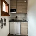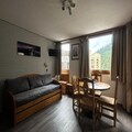 Compact yet thoughtfully designed, the 22m² studio comfortably accommodates up to four guests. The living area features a sofa bed, a trundle bed, and two bunk beds, making it ideal for both relaxation and restful nights. The open-plan kitchen is equipped with modern amenities, including two electric hobs, a dishwasher, a combination microwave, and a refrigerator, allowing you to prepare hearty meals after a day on the slopes. The bathroom includes a bathtub and toilet, while the balcony offers a quiet spot to unwind, facing north with tranquil views away from the slopes.