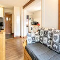 This 47m² apartment, thoughtfully refurbished in 2021, combines modern comfort with alpine charm. The spacious living room invites relaxation, while the open kitchen is fully equipped with a ceramic hob, oven, microwave, dishwasher, and more—perfect for preparing hearty meals after a day on the slopes. Accommodating up to seven guests, the apartment features a master bedroom with a double bed and private bathroom, a cozy bedroom with a bunk bed and pull-out bed, and a living area with a pull-out sofa bed. Additional conveniences include a washing machine, two televisions, ski lockers, and a baby bed and high chair for families.