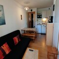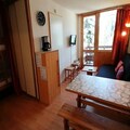 The apartment, located on the second floor of the 'Le Chanteloup' residence, is thoughtfully designed to accommodate up to four guests. Inside, you'll find a well-equipped kitchenette featuring a refrigerator, microwave/grill, electric hobs, coffee maker, toaster, and kettle, seamlessly opening into a welcoming living area with a comfortable sofa, dining table, and flat-screen TV. The sleeping arrangements include a cozy bedroom with a queen-size bed and ample storage, as well as a sleeping alcove with bunk beds, perfect for families or small groups. A private balcony overlooking the valley provides the ideal spot to unwind after a day of adventure, while the bathroom with a bathtub and separate toilet ensures convenience and comfort.