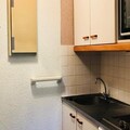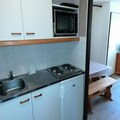 Apartment featuring a kitchenette equipped with 4 electric hotplates, a refrigerator, a mini oven, a microwave, and a kettle.