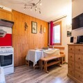Spanning 65m², this thoughtfully designed apartment comfortably accommodates up to nine guests. The ground floor features a fully equipped kitchen with modern appliances, a cozy living room with a flat-screen TV, and a bedroom with a plush 160cm double bed. Upstairs, you'll find a newly renovated shower room, a second bedroom with two single beds, and a mezzanine area with bunk beds and an additional single bed. An alcove with two single beds provides extra sleeping space, making this home perfect for families or groups of friends. The private balcony offers a stunning panorama of the valley and surrounding peaks, creating the perfect backdrop for your morning coffee or evening relaxation.