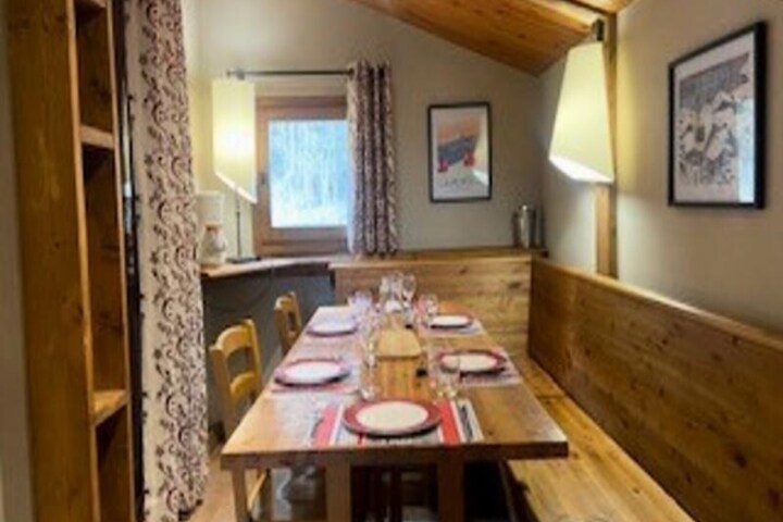 High above the charming village of Montchavin, this beautifully renovated apartment offers a cozy retreat with breathtaking views of Mont Blanc. From its elevated position, you’ll wake up to the serene beauty of the French Alps, where crisp mountain air and stunning landscapes set the tone for an unforgettable holiday. Whether you’re here to ski the nearby slopes or simply unwind in a tranquil alpine setting, this property promises a unique blend of comfort and convenience. \n\nThe apartment spans 47m², including 21m² under the eaves, and accommodates up to four guests. The thoughtfully designed interior features a small enclosed kitchen equipped with modern appliances such as a ceramic hob, microwave, dishwasher, and more, making meal preparation a breeze. The living area boasts a cozy corner sofa and a flat-screen TV, perfect for relaxing after a day of adventure. Upstairs, two bedrooms under the eaves provide restful sleeping arrangements, with one offering a 160cm bed formed by two singles and the other featuring two single beds. A bathroom with a bathtub and separate toilet adds to the convenience, while the ski locker ensures easy storage for your gear. \n\nLocated just 150 meters from the slopes and the resort center, the residence is ideally situated for exploring Montchavin’s vibrant atmosphere. Ski lifts, shops, and restaurants are all within walking distance, making it easy to immerse yourself in the local culture and activities. In summer, the area transforms into a haven for hikers and nature lovers, with trails that lead to awe-inspiring vistas and peaceful alpine meadows. \n\nWhether you’re seeking thrilling winter sports or serene summer escapes, this apartment is your gateway to the best of Montchavin. With its stunning views, modern amenities, and prime location, it’s the perfect choice for creating lasting memories in the heart of the French Alps.