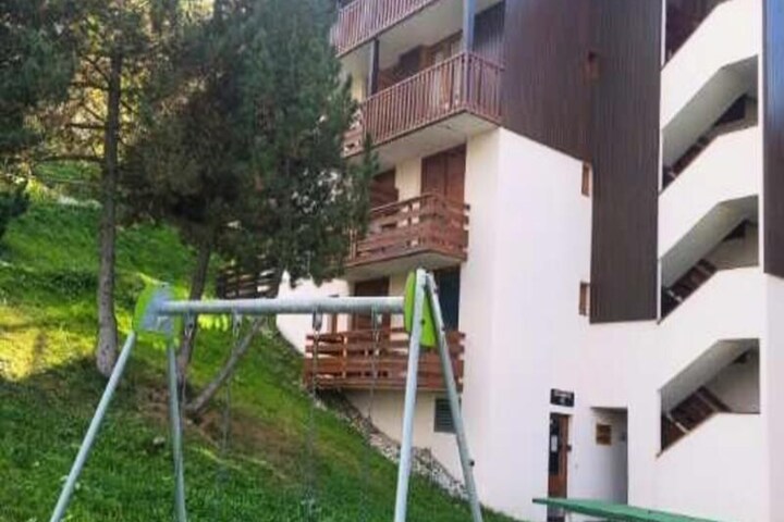 Residence "Le Chanteloup", on the slopes, quiet, pleasant and renovated 26m² apartment for 4 people, on the 1st floor without elevator, with a balcony overlooking the valley and an individual ski locker on the ground floor (hallway facing the slopes).