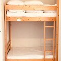 A sleeping alcove accommodates two bunk beds (not suitable for children under 6) and a storage closet. The bedroom has a double bed.