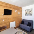 This studio is located on level "H" of the Paquebot des Neiges and is accessible by the "Diamant" elevator. It consists of a living room, a separate kitchen, and a bathroom with a toilet. Its south-facing balcony offers a lovely view of the slopes.