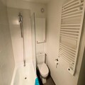 The living room includes a double sofa bed and a flat-screen TV. For your comfort, a sleeping alcove with two bunk beds and a TV is also available. The kitchen, located in the entrance, is equipped with a combi oven, two ceramic hobs, a refrigerator, a dishwasher, and a SENSEO coffee maker.