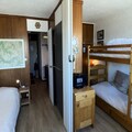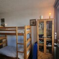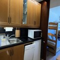 Designed to accommodate up to four guests, the 27m² studio is thoughtfully arranged for both comfort and practicality. The living space, cleverly divided by a sliding panel, features two single beds and a set of bunk beds, ensuring restful nights after active days. The kitchen is fully equipped with modern amenities, including ceramic hobs, a refrigerator, a microwave, and even a Nespresso coffee maker for your morning brew. A flat-screen TV and cozy duvets add to the inviting atmosphere, while the bathroom provides a bathtub and all essential facilities. Please note that bed linen is not provided, and pets are not allowed.