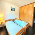 The 80m² apartment comfortably accommodates up to eight guests, featuring a divisible living room with a TV and two trundle beds, a bright bedroom with two single beds and two Murphy beds, and a second bedroom with two single beds. The separate kitchen is fully equipped with modern amenities, including a dishwasher, oven, microwave, and Nespresso coffee maker, ensuring you can prepare hearty meals after a day of exploration. Two bathrooms, one with a bathtub and washing machine and the other with a shower, provide added comfort and convenience. Additional amenities include Wi-Fi and a ski locker, making your stay as seamless as possible.