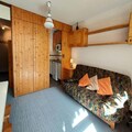The apartment, located on the first floor, spans 24m² and is thoughtfully designed for comfort and convenience. The living room features a comfortable sofa bed and TV, perfect for relaxing after a day on the slopes. A separate kitchen is equipped with a microwave, refrigerator, and electric stovetop, making it easy to prepare meals at home. The entrance area includes practical bunk beds, ideal for families or small groups. A private bathroom with a toilet completes the space. Additional amenities include a ski locker and free parking right in front of the residence, ensuring a hassle-free stay.