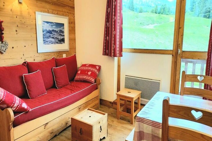 High above the Tarentaise Valley, this charming studio-cabin in the Hameaux 2 Residence offers a cozy alpine retreat at 2,050 meters. With its south-facing balcony, you’ll wake up to breathtaking views of snow-covered peaks and enjoy direct access to the slopes right from your doorstep. Whether you’re here for the thrill of skiing or the serene mountain atmosphere, this property places you at the heart of Plagne Villages, a family-friendly resort seamlessly connected to Plagne-Centre by cable car.