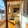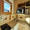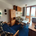 The 20m² studio is thoughtfully designed to accommodate up to three guests. The living area features a comfortable sofa bed and a trundle bed, ensuring restful nights after days filled with adventure. The compact yet fully equipped kitchen includes a dishwasher, microwave, mini oven, ceramic hob, and refrigerator, making it easy to prepare hearty meals. A modern shower room and toilet complete the space, while the southwest-facing balcony provides the perfect spot to soak in the sun and admire the snowy vistas. Additional conveniences such as a ski locker enhance your stay, ensuring a hassle-free experience.