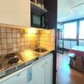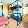 Designed for two guests, the studio features a clever layout that maximizes comfort and functionality. The mezzanine double bed provides a cozy sleeping nook, while the living area invites you to unwind with a sofa and television after a day of adventure. The compact kitchen is equipped with all the essentials, including a microwave, electric burners, refrigerator, kettle, coffee maker, and toaster, making it easy to prepare meals or snacks. The bathroom includes a bathtub and toilet, ensuring a relaxing end to your day. Additional conveniences such as a ski locker and nearby free outdoor parking (subject to availability) enhance your stay.