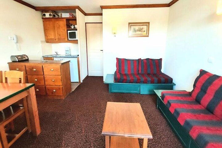 Bask in the serene charm of Plagne Soleil, where this delightful 3-room apartment offers a cozy retreat amidst the breathtaking French Alps. Perched on the second floor of the Mont Soleil A Residence, the property boasts a west-facing balcony with sweeping southward views of the gentle blue slope that gracefully connects Plagne Soleil to Plagne Villages. Here, the tranquility of a chalet-inspired residence meets the convenience of ski-in/ski-out access, ensuring you’re always just steps away from the pristine slopes and alpine adventures.
