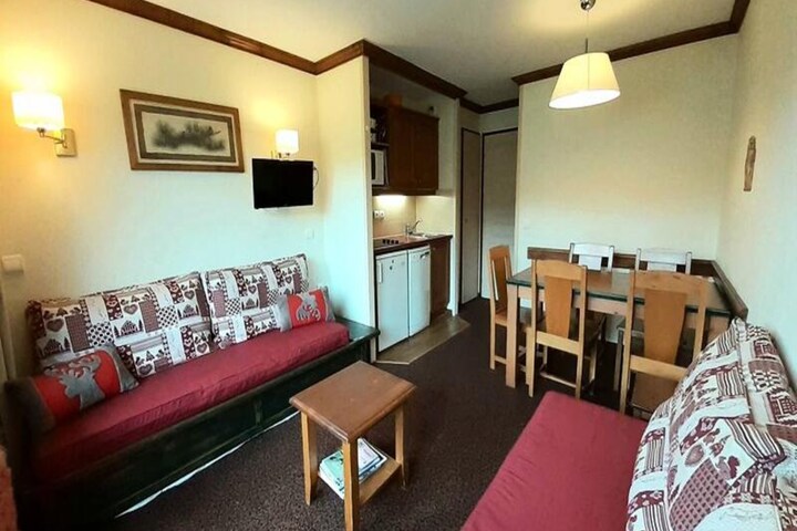 High above the Tarentaise Valley, where the snow sparkles under the alpine sun, this charming one-bedroom apartment in the Mont Soleil B Residence offers a serene retreat with ski-in/ski-out convenience. From its south-facing balcony, enjoy uninterrupted views of the gentle blue slope that gracefully connects Plagne Soleil and Plagne Villages, a scene that epitomizes the beauty of the French Alps. The residence, with its traditional chalet-inspired wooden facades, exudes warmth and authenticity, perfectly complementing its tranquil surroundings.