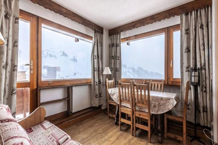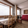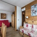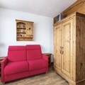 Inside, the recently renovated 50m² apartment is thoughtfully designed to accommodate up to seven guests. The divisible living room features two comfortable sofa beds and a flat-screen TV, offering a flexible and relaxing space to unwind after a day on the slopes. The fully equipped kitchen, complete with a hob, oven, refrigerator, and dishwasher, ensures you have everything you need to prepare hearty meals. Additional conveniences include a bathroom, separate toilet, and a ski locker for your gear. For added comfort, optional services such as bed linen, towels, and end-of-stay cleaning can be arranged prior to your arrival.