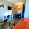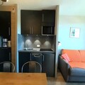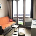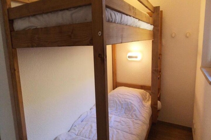 This cozy 23m² apartment, fully renovated in 2018, is located on the 4th floor and features elevator access. The living space is thoughtfully designed, with a comfortable sofa bed (160x190cm) in the main room and a sleeping alcove with two bunk beds (80x190cm), making it ideal for couples or small families. The modern kitchen is equipped with a dishwasher, microwave, oven, and ceramic hob, providing everything you need to prepare hearty meals after a day on the slopes. The bathroom offers a sleek walk-in shower and toilet, while the apartment’s large windows present unobstructed views of the surrounding slopes, filling the space with natural light and alpine serenity.