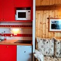 Inside, the 32m² apartment has been thoughtfully renovated to maximize comfort and functionality. The bright living room features a cozy sofa with a trundle bed, perfect for relaxing after a day on the slopes. The open-plan kitchen is fully equipped with modern appliances, including a refrigerator, dishwasher, ceramic hob, and microwave, making it easy to prepare hearty meals. The bedroom, complete with a bunk bed and a single bed, is ideal for families with children. Additional amenities include a ski locker, a covered parking space, and access to the Plagne Lauzes wellness area with a heated outdoor pool (subject to availability).
