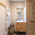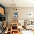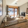 Step inside this 54m² apartment and discover a thoughtfully designed space that caters to your every need. The bright living room, complete with a cozy sofa and television, opens onto a south-facing balcony where you can soak in the mountain views. The open-plan kitchen is fully equipped with modern appliances, including a refrigerator/freezer, dishwasher, washer-dryer, ceramic hob, oven, microwave, and Nespresso coffee maker, making meal preparation a breeze. The master bedroom features a plush double bed and an en-suite shower room, while the second bedroom offers two versatile single beds. With two bathrooms and a separate toilet, the layout ensures privacy and comfort for all guests. Additional amenities include a ski locker and private garage, ensuring a seamless stay.