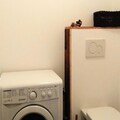 This 57m² apartment is thoughtfully designed to accommodate up to seven guests. The bright living room, complete with a double sofa bed and television, opens onto the terrace, creating a seamless indoor-outdoor flow. The fully equipped open kitchen features everything you need, from a refrigerator and dishwasher to a Senseo coffee maker and stereo system, making it easy to prepare meals and enjoy cozy evenings in. Two bedrooms provide flexible sleeping arrangements, including a double bed in one room and a mezzanine-style setup with additional beds in the other, perfect for families or groups of friends. Two modern bathrooms and a separate toilet ensure convenience for all guests.