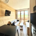 High above the Tarentaise Valley, this charming one-bedroom apartment in the Andromède Residence offers a perfect alpine retreat in Belle Plagne. With its southwest-facing balcony, you can soak in the breathtaking mountain views while basking in the sunshine, creating a serene and picturesque atmosphere for your holiday. Belle Plagne, perched at 2,050 meters, is a pedestrian-friendly resort known for its traditional mountain architecture and direct ski-in, ski-out access to the slopes, making it a haven for winter sports enthusiasts and nature lovers alike.