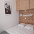 The apartment is thoughtfully designed for up to four guests, featuring a cozy living room with two single beds and a television, as well as a separate bedroom with a comfortable double bed. The open-plan kitchen is fully equipped with modern appliances, including a ceramic hob, refrigerator, dishwasher, and coffee makers, ensuring you have everything needed to prepare delicious meals after a day on the slopes. The bathroom includes a bathtub and toilet, providing convenience and comfort during your stay. Additional amenities such as a ski locker and covered parking space enhance the ease of your alpine getaway.