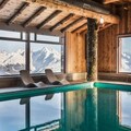 High above the scenic Tarentaise Valley, this charming 40m² apartment offers a serene mountain retreat with direct access to the slopes of Plagne Aime 2000. Located on the 8th floor of the prestigious Les Hauts Bois residence, it combines modern comfort with breathtaking alpine views, making it an ideal choice for families or groups of up to six. Whether you're here to carve through pristine snow or relax amidst stunning landscapes, this property promises an unforgettable stay in the heart of the French Alps. \n\nStep into the bright and inviting living room, where a cozy electric fireplace and a comfortable sofa bed create a warm ambiance. The space opens onto a long east-facing balcony, perfect for soaking in the morning sun and admiring the majestic peaks. The fully equipped kitchen, complete with a dishwasher, ceramic hobs, and a raclette grill, invites you to prepare hearty meals after a day on the slopes. The master bedroom features two single beds that can be joined to form a double, along with an en-suite shower. A second bedroom with twin beds and an additional bathroom with a bathtub ensure ample space and privacy for all guests.\n\nGuests of Les Hauts Bois enjoy exclusive access to a luxurious wellness area, including a swimming pool, sauna, and hammam, perfect for unwinding after an active day. The residence also offers a ski locker and covered parking for added convenience. Just 200 meters away, the vibrant shopping mall at Le Paquebot provides restaurants, shops, and essential services. For further exploration, the cable car connects you to Plagne Centre in minutes, opening up even more opportunities for adventure and leisure.\n\nWhether you're seeking thrilling ski runs, tranquil mountain vistas, or a relaxing spa experience, this apartment in Plagne Aime 2000 delivers it all. Embrace the magic of the Alps and create lasting memories in this exceptional alpine getaway.
