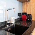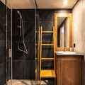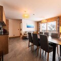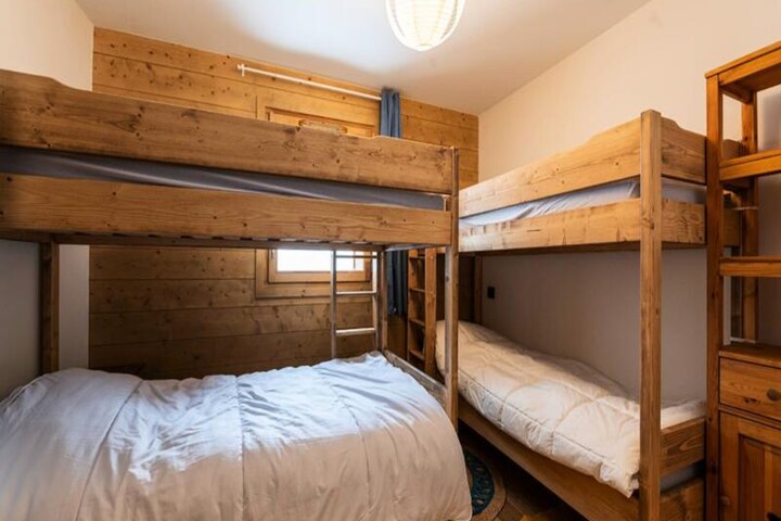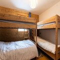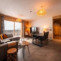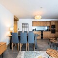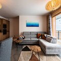 Spanning 88m², this spacious ground-floor apartment is designed to accommodate up to eight guests in absolute comfort. The bright and inviting living room features a plush corner sofa and a large television, creating the perfect space to unwind after a day of adventure. The fully equipped open-plan kitchen, complete with a wine cooler and Nespresso coffee maker, makes dining in a pleasure. The sleeping arrangements include a luxurious master suite with an en-suite shower and queen-size bed, a cozy children's room with bunk beds, and a versatile twin room. Additional amenities such as a washer/dryer, ski locker, and private parking ensure a hassle-free experience.