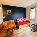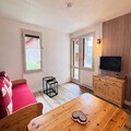 Imagine waking up to the majestic silhouette of Mont Blanc greeting you from your private terrace. This cozy 20m² studio, located on the ground floor of the charming La Boussole residence, is a delightful retreat for two. Designed with comfort and simplicity in mind, the studio features a living room with a single sofa bed and pull-out bed, a well-equipped kitchenette with modern appliances including an oven, microwave, and dishwasher, and a bathroom with a toilet. The north-facing terrace offers breathtaking views of the iconic Mont Blanc, creating the perfect spot for a morning coffee or an evening of quiet reflection. Please note, the apartment is non-smoking, and pets are welcome for a small supplement. While there is no WiFi, the studio is equipped with duvets for a cozy stay.
