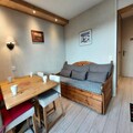 With breathtaking views of Mont Blanc and a prime location in the heart of Les Coches, this charming 22 m² apartment offers an intimate alpine retreat for up to four guests. Situated on the 4th floor of a centrally located residence (accessible via the 1st floor from the secondary entrance), this cozy space is perfect for couples or small families seeking a comfortable and convenient mountain escape. The apartment’s northwest-facing orientation ensures stunning sunsets over the peaks, creating a magical ambiance after a day on the slopes. \n\nInside, the apartment features a thoughtfully designed layout with a bedroom furnished with a double bed, and a living room equipped with a single bed and trundle bed, making it ideal for flexible sleeping arrangements. The kitchenette, integrated into the living area, is fully equipped with modern appliances, including an oven, dishwasher, microwave, induction hobs, and even a raclette and fondue set for a true taste of the Alps. A television and cozy furnishings complete the inviting atmosphere, while the shower room with a toilet ensures all essentials are met. \n\nThe residence itself is perfectly positioned at the foot of the slopes, with direct access to the vibrant Place des Commerces. Here, you’ll find a variety of shops, restaurants, and amenities, as well as the ESF ski school and daycare, making it an excellent choice for families. The Carreau neighborhood is known for its lively atmosphere, hosting numerous activities and events throughout the season. For added convenience, a ski locker is available, and underground parking can be reserved in advance. \n\nWhether you’re here to carve through the Paradiski slopes, explore the charming village, or simply relax and soak in the alpine beauty, this apartment offers the perfect base for an unforgettable mountain getaway. Non-smoking and pet-free, it ensures a clean and tranquil environment for all guests.