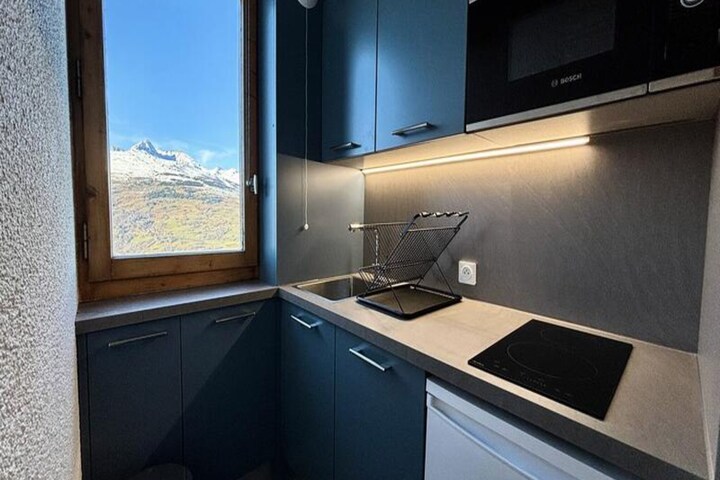 High above the Tarentaise Valley, this charming one-bedroom apartment offers a cozy alpine retreat with breathtaking views of Mont Blanc. Located in the peaceful Observatory district of Les Coches, it’s the perfect base for couples or small families seeking a tranquil escape amidst the French Alps. The northwest-facing balcony invites you to unwind with a warm drink while soaking in the majestic mountain scenery after a day of adventure.