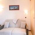The apartment features a comfortable bedroom with bunk beds and a living room equipped with a sofa bed, TV, and radio. The separate kitchenette is fully equipped with a microwave, dishwasher, electric hotplates, and even a raclette set for a true alpine dining experience. A modern shower and separate toilet add to the convenience, while the north-facing balcony provides stunning views of the valley and Mont Blanc. Ski enthusiasts will appreciate the ski locker in the building and the proximity to the slopes, just 100 meters away.