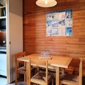 The 28 m² studio is thoughtfully designed to accommodate up to four guests. A movable partition allows for flexible living arrangements, with a sleeping area featuring a single sofa bed and pull-out bed, as well as a dining area with bunk beds. The kitchen is fully equipped with modern appliances, including a dishwasher, microwave, and fondue set, ensuring you have everything needed for cozy evenings in. A private north-facing balcony provides stunning vistas of Mont Blanc, while the ski locker in the residence adds convenience for winter sports enthusiasts. Please note that the apartment is non-smoking, and pets are welcome for a small fee.