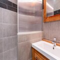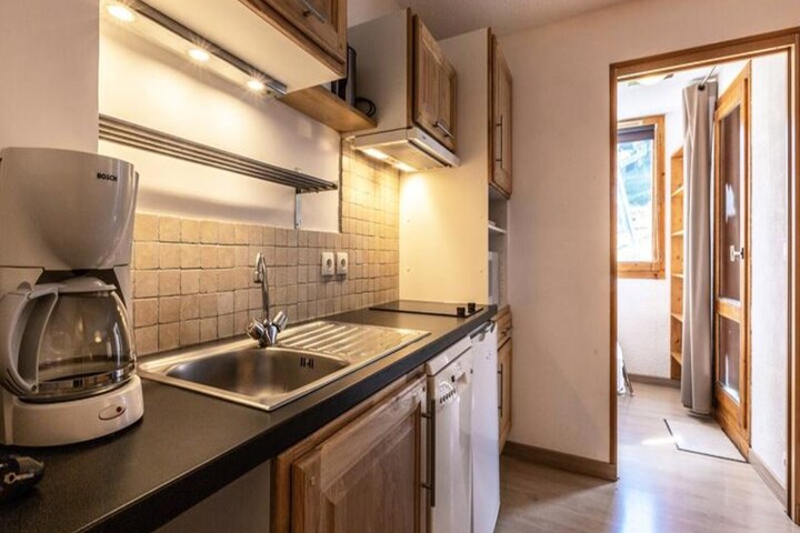 Inside, the apartment is thoughtfully designed to maximize comfort and functionality. The sleeping alcove features bunk beds for three, while the living room offers a sofa bed and a TV, creating a welcoming space to unwind after a day on the slopes. The kitchen is fully equipped with modern appliances, including a microwave, dishwasher, ceramic hobs, and even a raclette set for a true taste of the Alps. A separate shower and toilet add to the convenience, and the apartment is outfitted with cozy duvets to ensure restful nights. Please note that this is a non-smoking property and pets are not allowed.