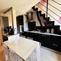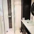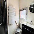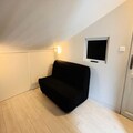The apartment spans two levels, thoughtfully designed for comfort and convenience. Upstairs, you'll find a mezzanine with a sofa bed and TV, as well as a bedroom featuring a single bed and a bunk bed. A modern shower room with a toilet completes the upper floor. Downstairs, a cozy double bedroom awaits, alongside a bright living room perfect for unwinding after a day of adventure. The fully equipped open-plan kitchen includes everything from an oven and induction hobs to a dishwasher and coffee maker, making it easy to prepare hearty meals. A second shower room with a washing machine and a separate toilet add to the practicality. Step out onto the west-facing balcony to soak in the alpine views and fresh mountain air.