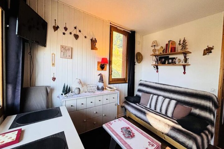 Surrounded by the serene beauty of the French Alps, this charming 17 m² studio offers a cozy retreat for two in the heart of the picturesque Le Hameau du Sauget. Wake up to the crisp mountain air and stunning northeast-facing views from your private balcony, where the majestic peaks and lush forests create a tranquil backdrop for your alpine escape. Perfectly situated on the edge of the forest, this studio blends traditional alpine architecture with modern comforts, making it an ideal haven for couples seeking a peaceful getaway.