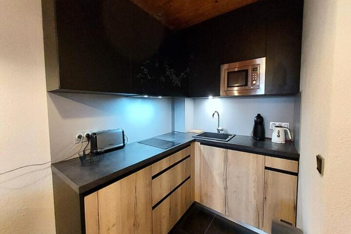 Inside, the apartment is thoughtfully equipped to ensure your comfort. The bedroom features a plush double bed, while a sleeping alcove with bunk beds and a sofa bed in the living room provide flexible sleeping arrangements. The open-plan kitchen is a delight for home cooks, complete with a combi oven, dishwasher, induction hobs, and even a raclette and fondue set for authentic Savoyard evenings. The bathroom is modern and practical, and the apartment includes duvets for a warm, restful night's sleep. While there’s no Wi-Fi, the charm of disconnecting and immersing yourself in the alpine atmosphere is unparalleled.