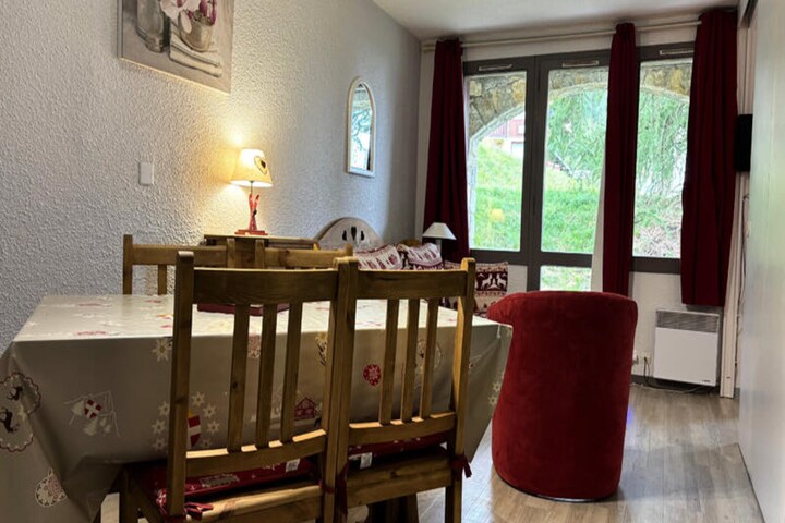 At the edge of the charming Montchavin Les Coches village in La Plagne, this cozy apartment offers a delightful alpine retreat just moments from the slopes. Imagine waking up to the crisp mountain air and stepping out onto your private terrace to soak in the serene south-west facing views. With its convenient location, you’re only a three-minute walk from the local shops and a mere minute’s stroll back to the slopes, making this residence a perfect base for your skiing adventures in the Paradiski domain. Whether you’re seeking thrilling descents or peaceful moments surrounded by snowy peaks, this property invites you to experience the magic of the French Alps. \n\nInside, the apartment is thoughtfully designed for comfort and practicality, accommodating up to four guests. The kitchenette opens onto a welcoming living room equipped with modern amenities such as induction hobs, a microwave, and a dishwasher, ensuring you have everything needed for a relaxing stay. The living room features a double sofa bed and a flat-screen TV, while the bedroom, separated by a sliding door, offers a cozy double bed. The bathroom includes a shower and toilet, completing the well-maintained layout. With free outdoor parking and ski lockers conveniently located on level one, every detail has been considered to enhance your holiday experience. \n\nBeyond the residence, the picturesque village atmosphere of Montchavin Les Coches invites exploration. Stroll through the charming streets, discover local eateries, and enjoy the vibrant après-ski scene. In summer, the area transforms into a haven for hikers and mountain bikers, with trails leading to breathtaking views and lush alpine meadows. Whether you’re visiting for winter sports or summer adventures, this apartment provides the perfect blend of comfort, convenience, and alpine charm. Create unforgettable memories in this idyllic mountain setting.