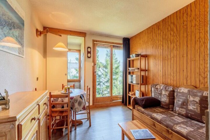 With its cozy charm and breathtaking views, this 23 m² studio cabin is the perfect alpine retreat for up to three guests. Situated on the ground floor in the peaceful Observatoire district of Les Coches, this property offers a serene escape with easy access to the slopes and resort amenities. Imagine waking up to the crisp mountain air and stepping out onto your private north-facing terrace, where panoramic views of the valley and the iconic Mont Blanc create a postcard-perfect backdrop for your holiday. \n\nInside, the studio is thoughtfully designed to maximize comfort and functionality. The cabin area features bunk beds, while the living room includes a single bed, a TV, and a radio for cozy evenings in. The well-equipped kitchen invites you to prepare hearty mountain meals, complete with an oven, microwave, dishwasher, and even a raclette and fondue set for authentic alpine dining experiences. A modern shower room with a toilet ensures convenience, while the apartment is equipped with blankets to keep you warm after a day on the slopes. Please note that this is a non-smoking property, and pets are welcome for a small additional fee.\n\nLocated just 100 meters from the ski slopes and 250 meters from the resort center, La Pendule residence offers unparalleled convenience. Public parking is nearby, and the pedestrian path ensures easy access to shops, restaurants, and après-ski activities. The Observatoire district is known for its tranquility and stunning vistas, making it a favorite among visitors seeking both relaxation and adventure.\n\nWhether you're here to carve through pristine snow or explore the vibrant summer trails, this charming studio cabin places you at the heart of the action while providing a peaceful haven to unwind. Let the allure of Mont Blanc and the beauty of the Tarentaise Valley make your alpine getaway truly unforgettable.