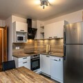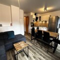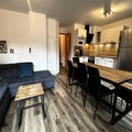 Spanning 80m² over two levels, the chalet comfortably accommodates up to eight guests. The thoughtfully designed layout includes three cozy bedrooms: two with double beds, one featuring an en-suite shower, and another with a private sink. The third bedroom offers two single beds and two trundle beds, making it ideal for families or groups. The open-plan living area invites relaxation with a plush sofa and TV, while the fully equipped kitchen boasts modern appliances like a ceramic hob, dishwasher, and Senseo coffee maker. Additional conveniences include Wi-Fi, a ski room with a boot dryer, and a washing machine for extended stays.
