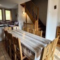 Spread across three levels, the chalet is thoughtfully designed to combine comfort and functionality. The ground floor features a cozy double bedroom, a children’s room with a bunk bed, and a convenient ski room to store your gear. The heart of the chalet lies on the first floor, where a spacious living area with a crackling fireplace invites you to unwind after a day on the slopes. The adjoining dining area, complete with a large table, is perfect for sharing hearty meals prepared in the fully equipped kitchen, which includes everything from a raclette grill to a fondue set for authentic alpine evenings. Upstairs, the master bedroom boasts its own private bathroom, while two additional twin bedrooms and a shared shower room ensure ample space for everyone.