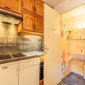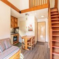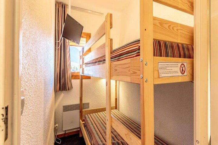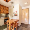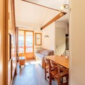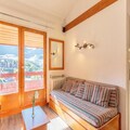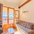 Designed with comfort and practicality in mind, the 39m² apartment accommodates up to six guests. The bright living room features a pull-out bed and a home cinema system, perfect for cozy evenings after a day on the slopes. The well-equipped kitchen includes a dishwasher, ceramic hobs, and a multi-function oven, making meal preparation a breeze. Upstairs, you'll find a serene double bedroom, a mezzanine with a single bed, and a second bedroom with bunk beds, ensuring ample space for families or groups. Modern conveniences like Wi-Fi, satellite TVs, and a ski locker enhance your stay, while the option to bring your pet adds a touch of home.