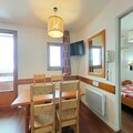 The apartment, located on the 3rd floor of the Residence Le Cervin, comfortably accommodates up to five guests. Its thoughtful layout includes a warm living room with a single sofa bed and flat-screen TV, a cozy alcove with a double bunk bed, and a private bedroom featuring a double bed. The open-plan kitchen is fully equipped with a dishwasher, refrigerator, microwave, and coffee maker, making it easy to prepare hearty meals after a day on the slopes. A bathroom with a bathtub and separate toilet adds to the convenience, while amenities like a ski locker, Wi-Fi, and a numbered parking space in the covered garage ensure a hassle-free stay.