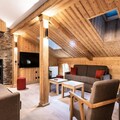 The apartments, accommodating between 2 and 15 guests, are thoughtfully designed with comfort and elegance in mind. Each unit features a fully equipped kitchen, cozy living spaces, and luxurious whirlpool baths, creating a home-away-from-home atmosphere. Whether you’re unwinding by the fire after a day on the slopes or enjoying a meal with loved ones, the warm interiors ensure a memorable stay. For added indulgence, the on-site wellness center boasts a swimming pool, spa, sauna, and fitness room, perfect for rejuvenating after an active day.